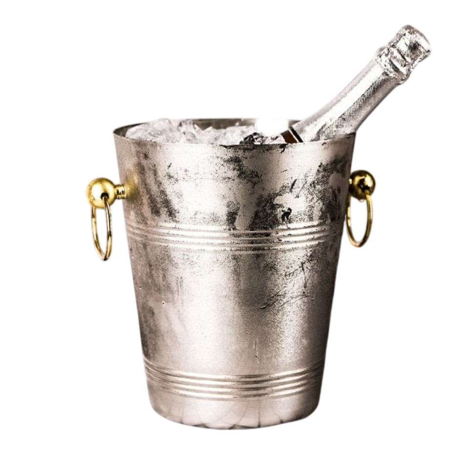 ถังน้ำแข็งสแตนเลสพรีเมียมแบบสองชั้นเก็บความเย็นสำหรับแชมเปญและไวน์ พร้อมฝาปิดและหูหิ้ว สำหรับอุปกรณ์บาร์ในบ้าน