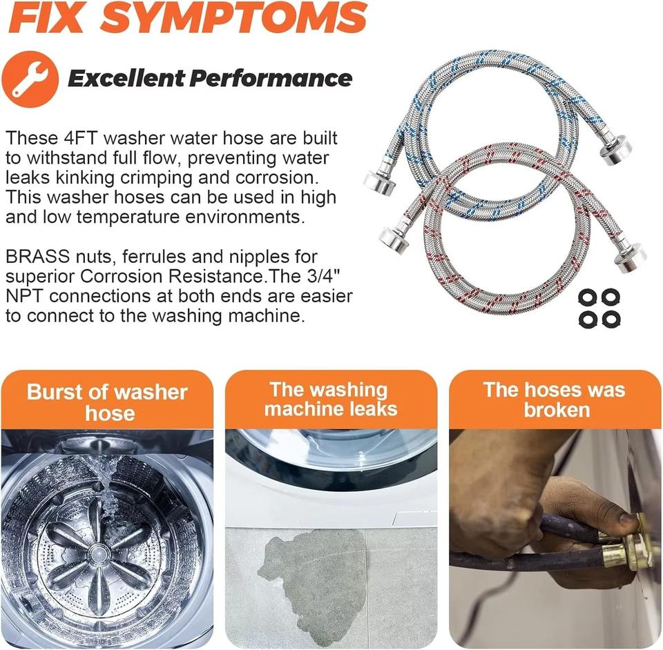 Premium Stainless Steel Manual Leak-proof Burst-proof Braided Washing Machine Inlet Hose for Outdoor & Hotel Use Customized Size