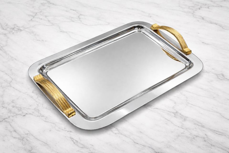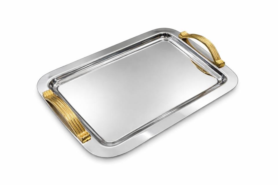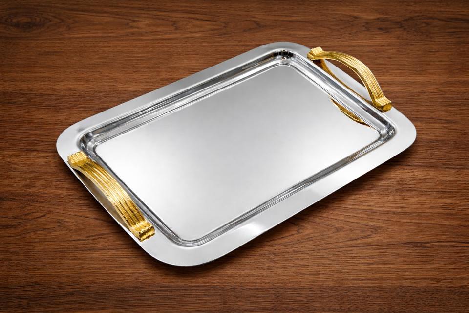 ถาดเสิร์ฟสแตนเลสเกรดพรีเมียม ถาดเหล็กสีเงินสำหรับโรงแรมหรู ถาดเสิร์ฟสไตล์โบราณ