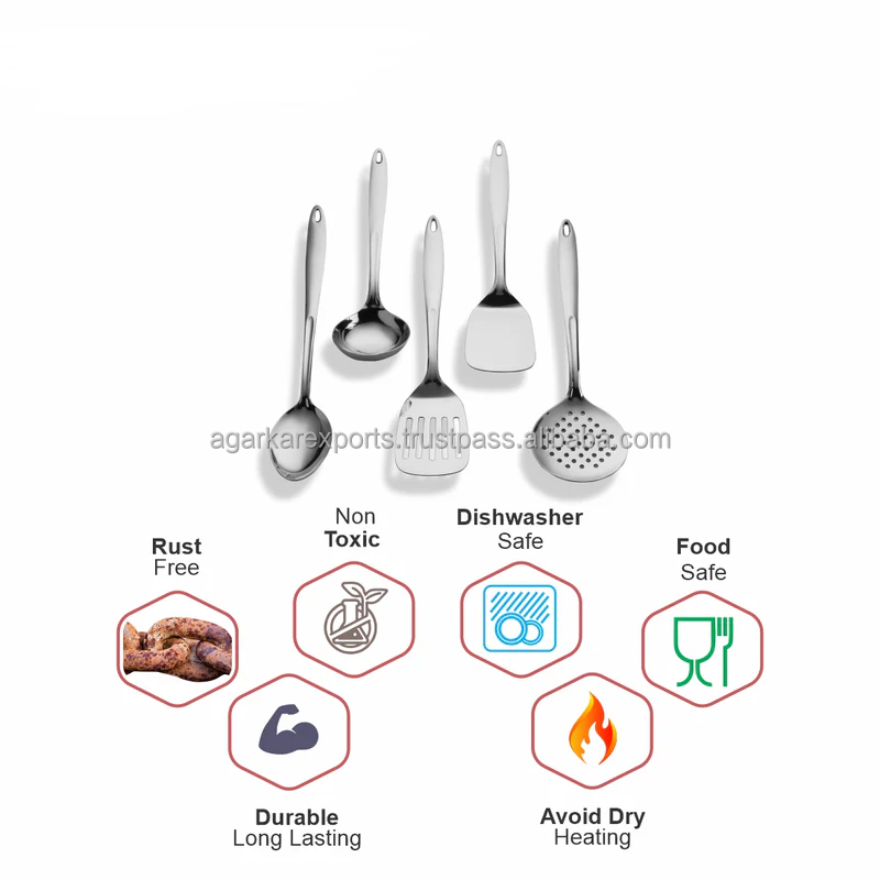 เครื่องครัวสแตนเลสสตีลแบบพรีเมี่ยมด้ามจับยาวสำหรับทอดเครื่องล้างจานแบบต้มปลอดภัยยั่งยืน