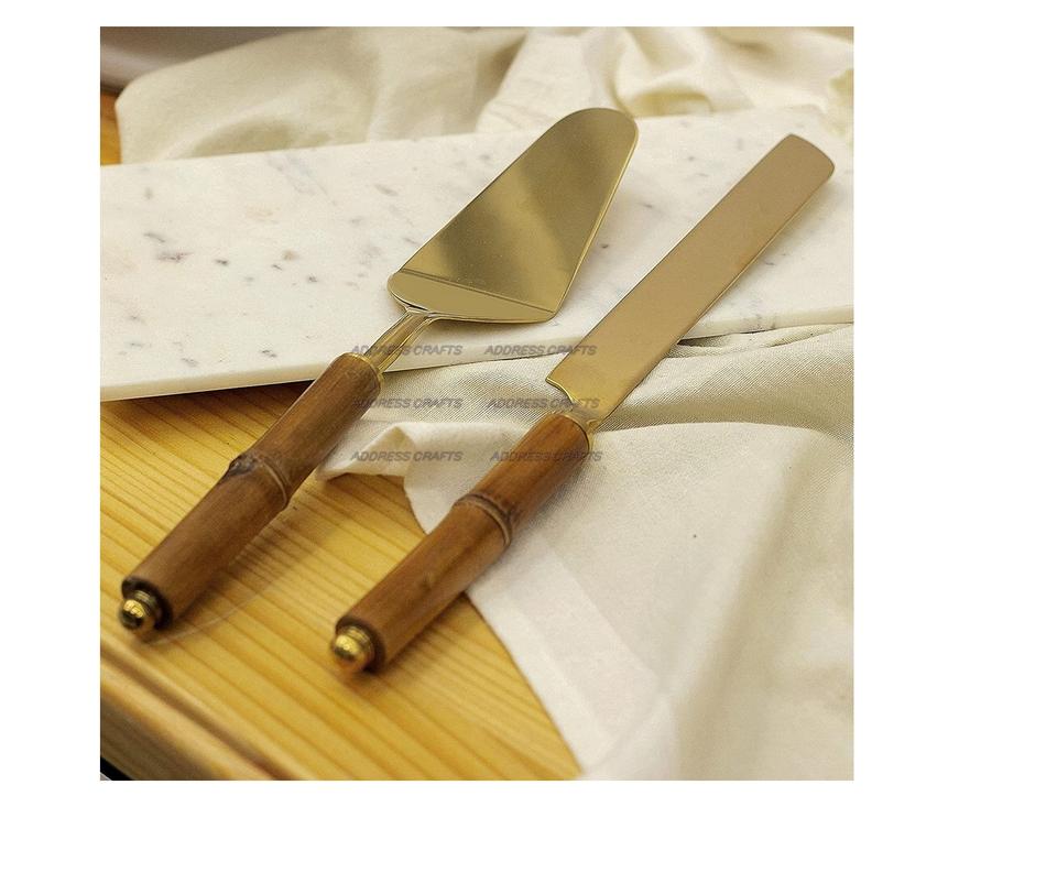 ชุดอุปกรณ์เสิร์ฟเค้กสแตนเลสพรีเมียมพร้อมด้ามไม้ไผ่ ใช้สำหรับงานแต่งงาน งานวันเกิด เครื่องครัว ดีไซน์ใหม่