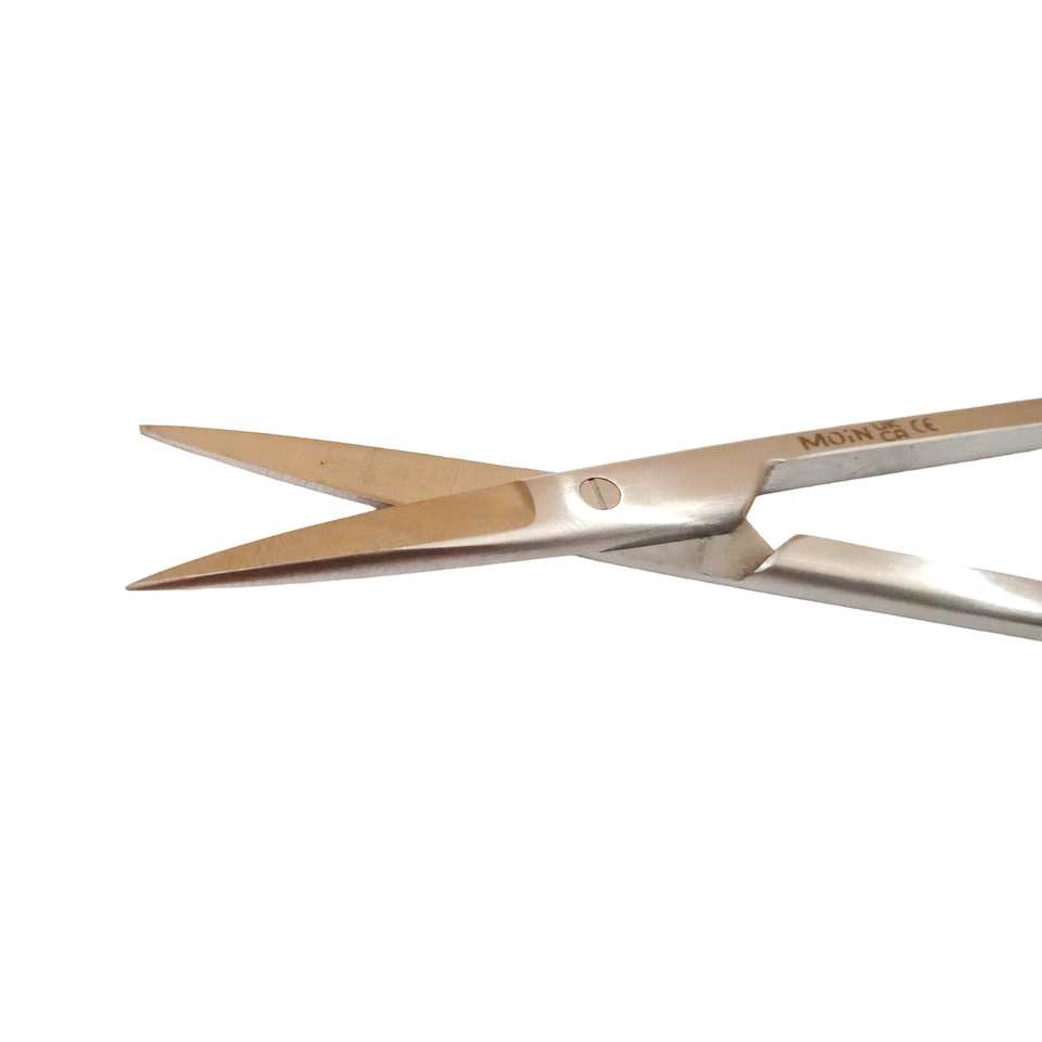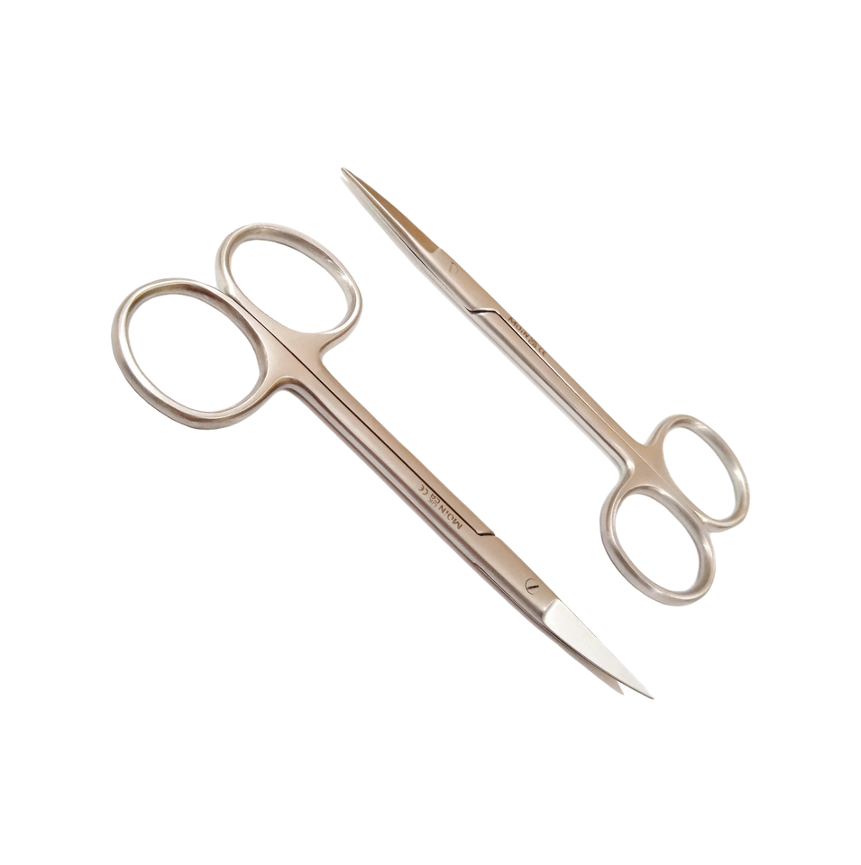 กรรไกรตัดเยื่อแก้วตาเหล็กกล้าคุณภาพสูง 4.5 นิ้ว แบบตรงและโค้ง ชุด 2 ชิ้น กรรไกรทันตกรรม เครื่องมือตัดเนื้อเยื่ออย่างแม่นยำ