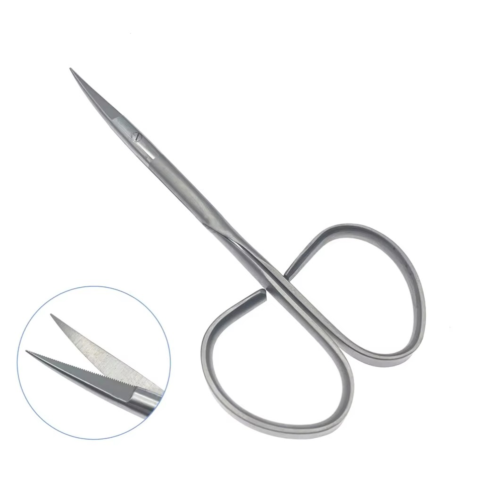 กรรไกรตัดเส้นเอ็นพรีเมียม สตีเวนส์ ริบบอน 12 ซม. แบบตรงและโค้ง ทำจากสแตนเลสสตีล สำหรับศัลยกรรมจักษุและประสาท ได้รับเครื่องหมาย CE ISO