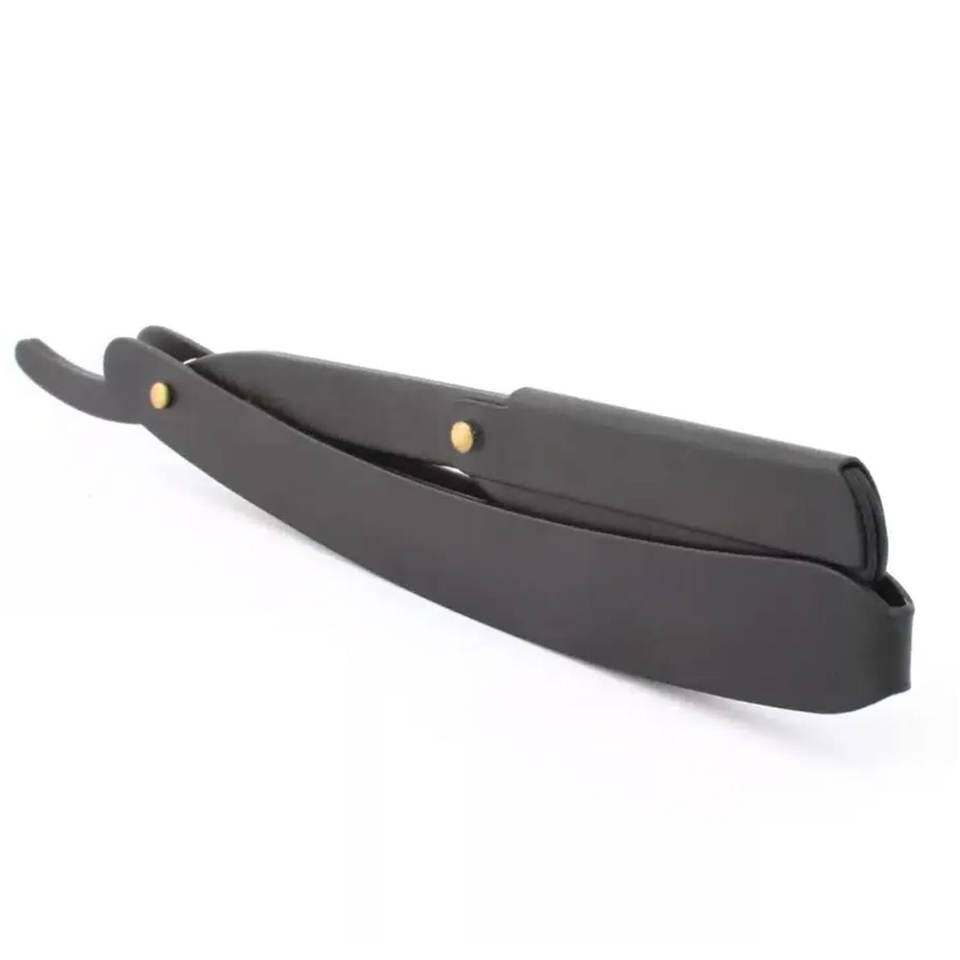 มีดโกนสแตนเลสสีดำแบบกำหนดเองมีดโกนหนวดร้านตัดผมขอบตรงแบบพรีเมียม