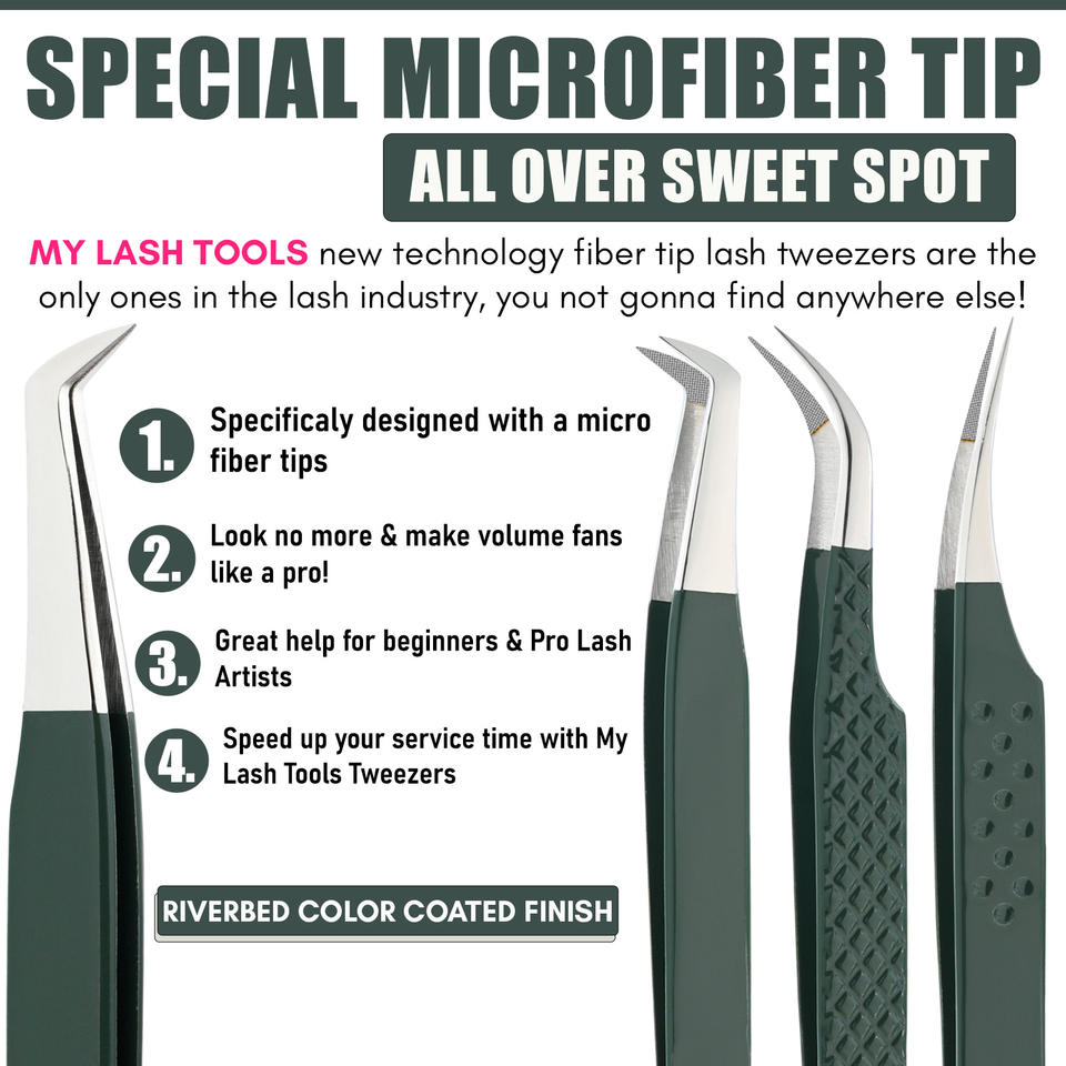 แหนบต่อขนตาแบบมืออาชีพ ปลายไฟเบอร์ สำหรับต่อขนตาแบบวอลลุ่ม