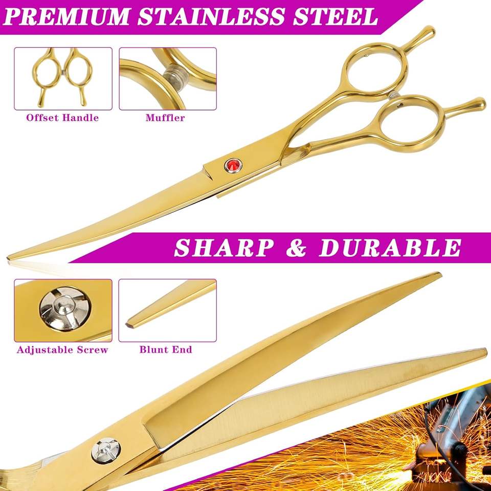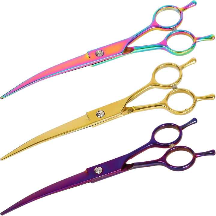 กรรไกรตัดแต่งขนสุนัขและแมวรูปทรงตรงอุปกรณ์ตัดผมโค้งทำจากสเตนเลสสตีล