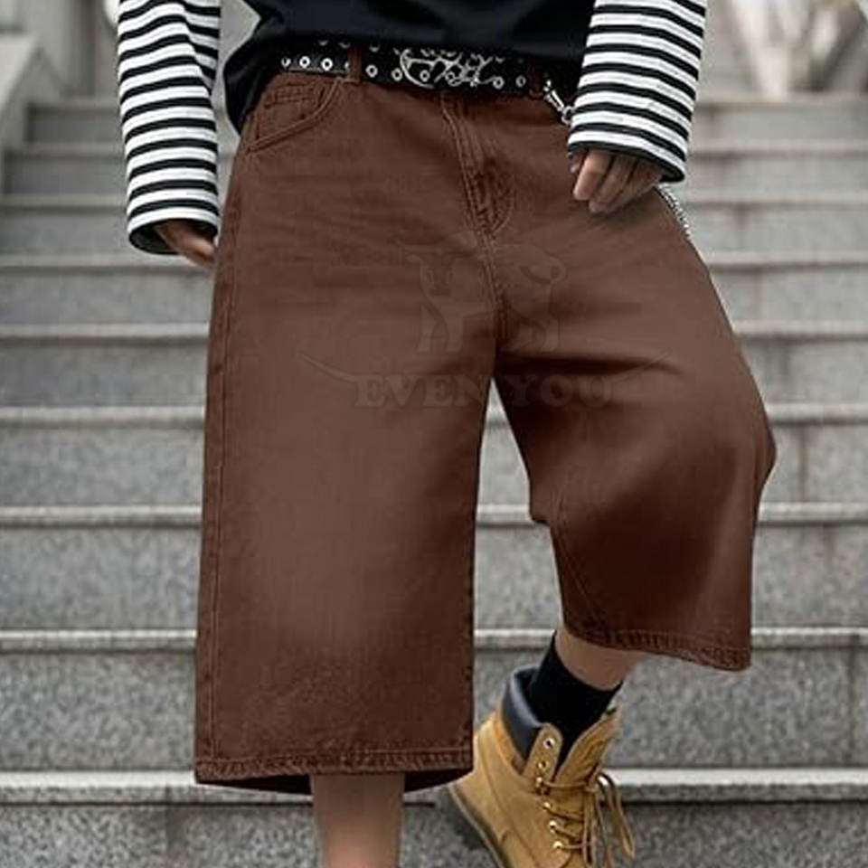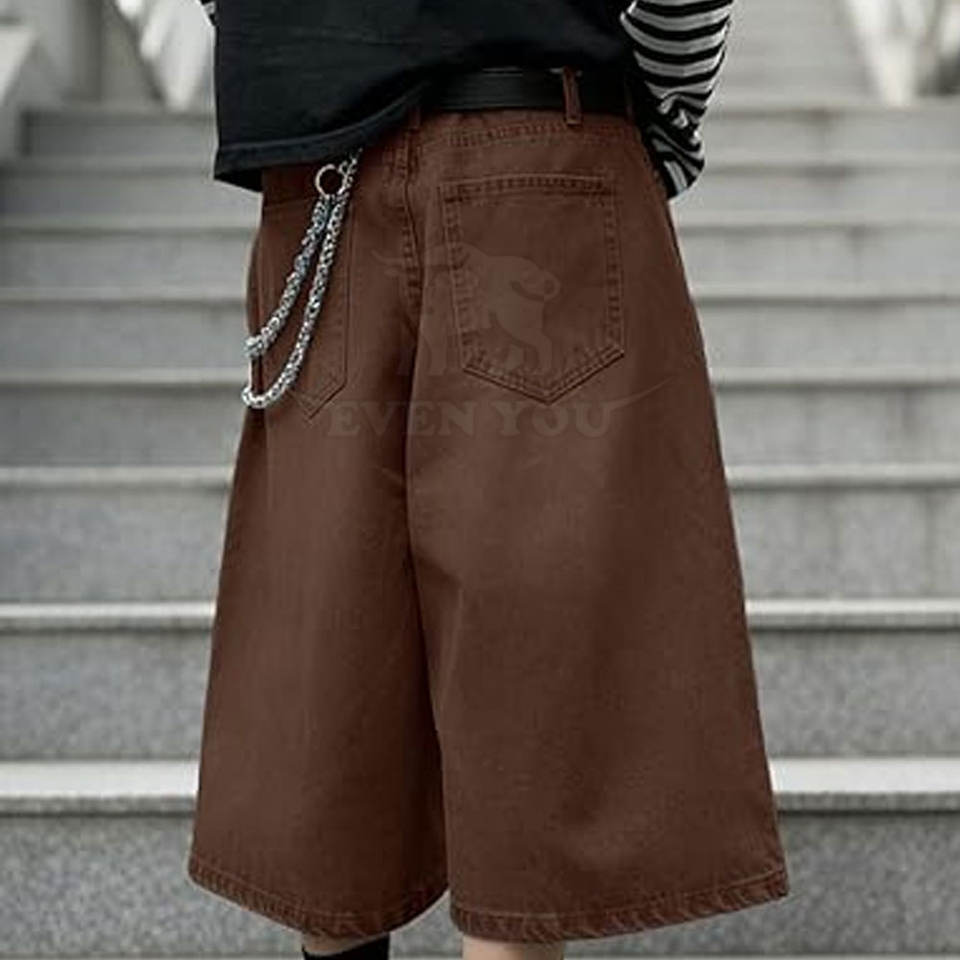 กางเกงยีนส์ขาสั้นพรีเมียมสำหรับผู้ชาย ทรงหลวมสบาย ดีไซน์ทันสมัย แรงบันดาลใจจากสไตล์จีนส์จอร์ทส์