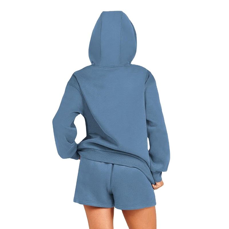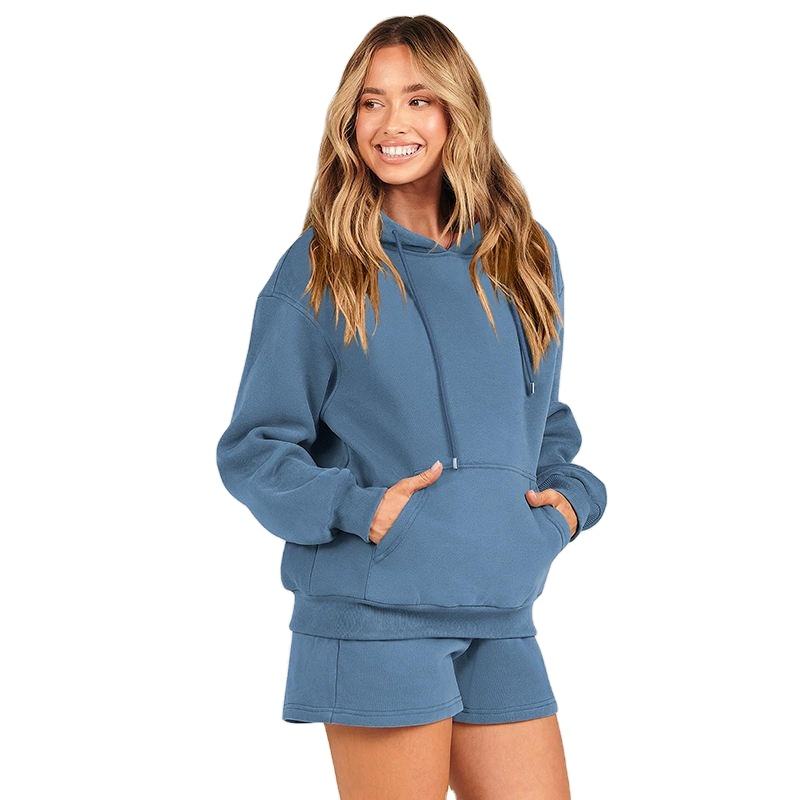 ชุดเซ็ตเสื้อฮู้ดดี้และกางเกงขาสั้นสตรี สตรีทแวร์ระดับพรีเมียม ผ้าฝ้ายฟลีซ ทรงโอเวอร์ไซส์ รับผลิตแบบ OEM แบรนด์ส่วนตัว