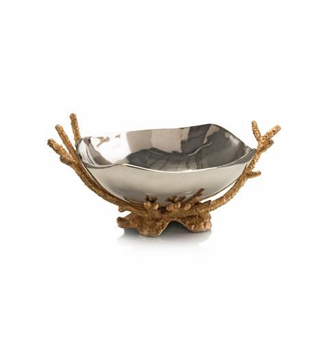 ชามเหล็กพร้อมขาตั้งทองเหลืองสำหรับเสิร์ฟอาหารและสลัดชามเสิร์ฟอาหารสุดหวานแบบพรีเมี่ยม