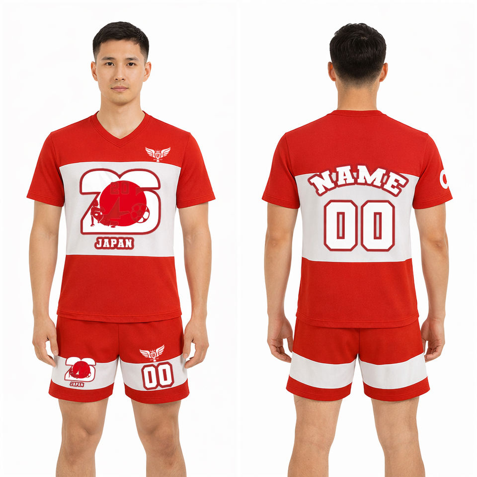 ชุดเสื้อฟุตบอลสไตล์ญี่ปุ่น พิมพ์ลายแบบซับลิเมชั่นระดับพรีเมียม สำหรับผู้ชาย ชุดยูนิฟอร์มฟุตบอลปี 2026 ชุดทีมแบบกำหนดเอง เสื้อผ้ากีฬาระบายอากาศได้ดี