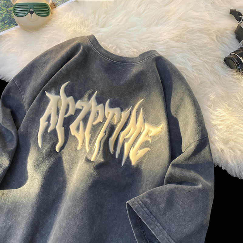 เสื้อยืดผู้ชายคอตั้งพิมพ์ลายดิจิทัลทรงหลวมโอเวอร์ไซส์แขนสั้นสไตล์ลำลองพรีเมียมสำหรับฤดูร้อน