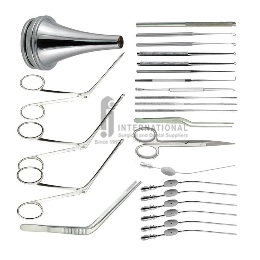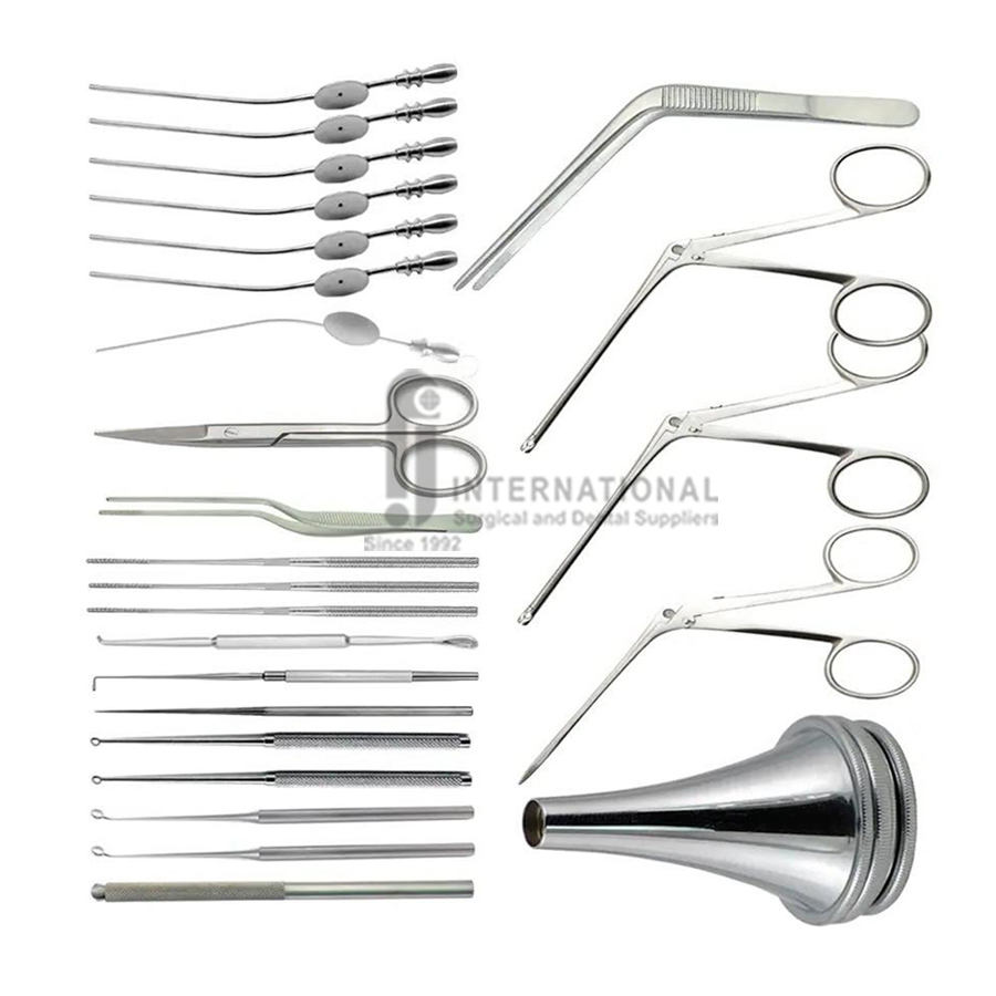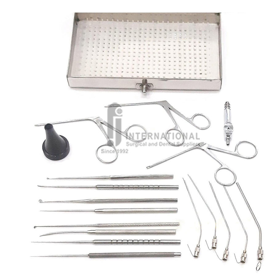 ชุดเครื่องมือผ่าตัดหูชั้นกลางแบบแมนนวลระดับพรีเมียม 28 ชิ้น ทำจากเหล็กกล้าไร้สนิม ได้รับการรับรองมาตรฐาน CE ชุดผ่าตัดหูชั้นกลาง MOL พร้อมถาดฆ่าเชื้อ รับประกัน 2 ปี