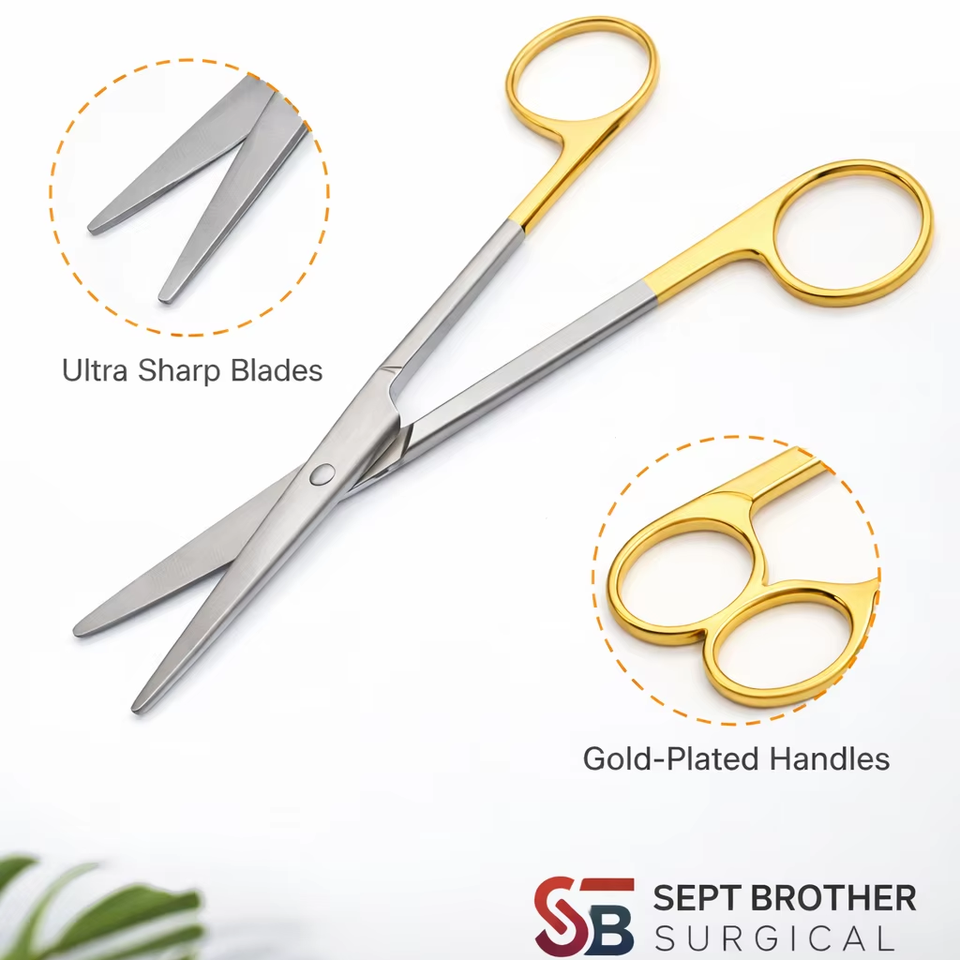 กรรไกรผ่าตัดระดับพรีเมียม ด้ามจับสีทอง สแตนเลสสตีล สำหรับการผ่าตัดทางการแพทย์