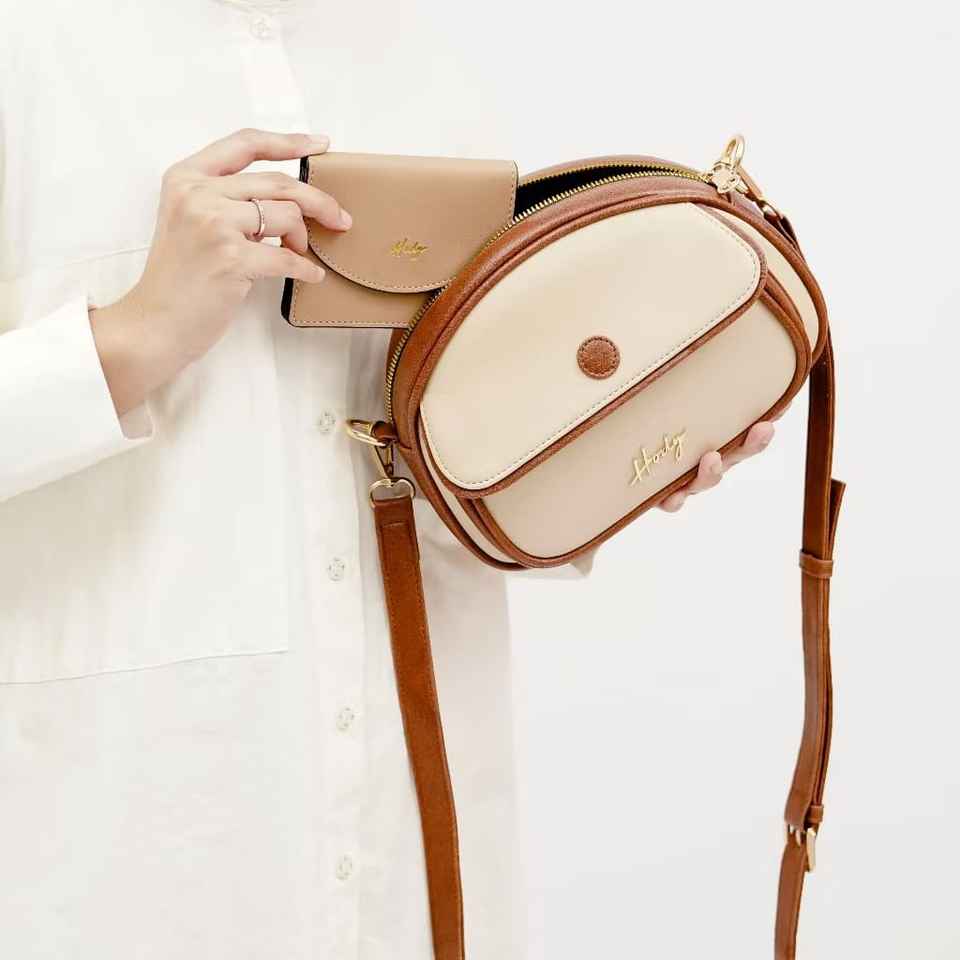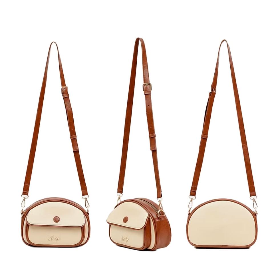 กระเป๋าหนังสังเคราะห์คุณภาพพรีเมียม กระเป๋าสะพายข้างผู้หญิงดีไซน์หรูหรา พร้อมแผ่นโลโก้สีทองและซิปปิดที่ปลอดภัย