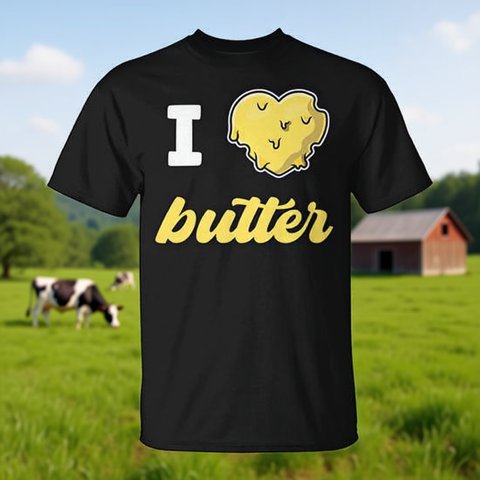 Premium T-Shirt Featuring 'I Love Butter'-Dairy Product Straight From the Cow for Advertising Promotions