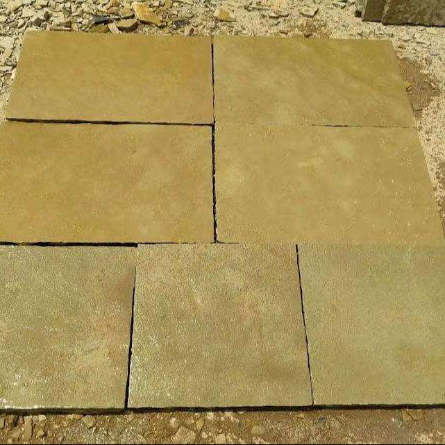 แผ่นหินปูนสีเหลืองทันดูร์เกรดพรีเมียมและกระเบื้องปูพื้นแบบผิวธรรมชาติ ตัดด้วยมือและด้วยเครื่องจักร สำหรับทางเดินภายนอกและพื้นปู