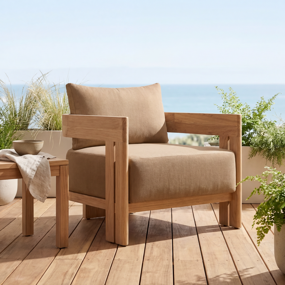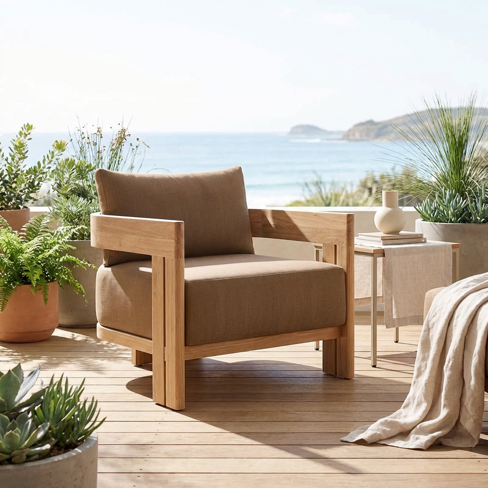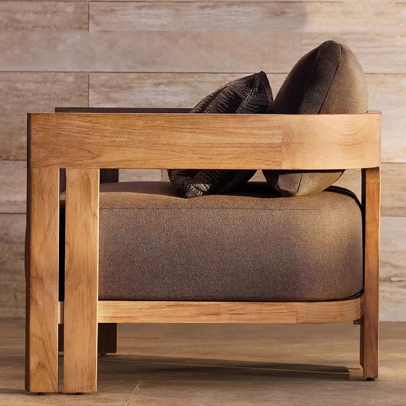 เก้าอี้พักผ่อนกลางแจ้งไม้สักคุณภาพพรีเมียม ทนทานต่อสภาพอากาศ, เก้าอี้สนามไม้ธรรมชาติป้องกันน้ำ, โซฟาไม้เนื้อแข็งทันสมัยสำหรับลานบ้าน (AU)