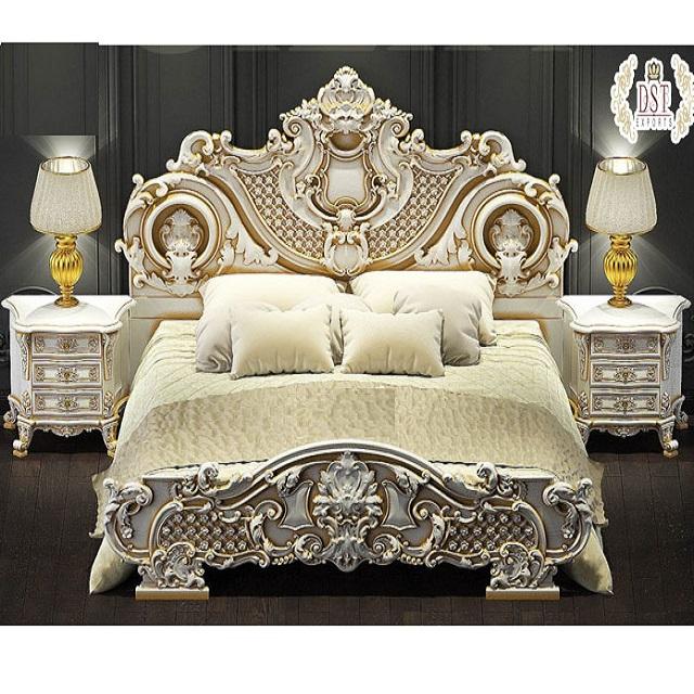 ชุดเฟอร์นิเจอร์ห้องนอนไม้สักพรีเมียมสีขาวทอง พร้อมเตียงคู่สุดพิเศษและเตียงคิงไซส์แบบหรูหรา