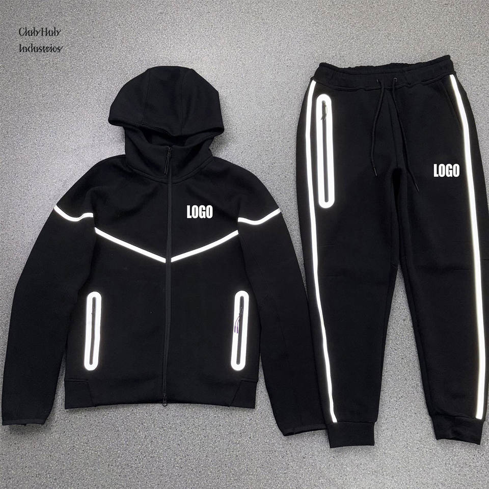 ชุดฮู้ดดี้และกางเกงจ็อกเกอร์ผ้าฟลีซเทคโนโลยีระบายอากาศสำหรับผู้ชายระดับพรีเมียมสำหรับฤดูหนาว พร้อมโลโก้และสีที่กำหนดเองได้
