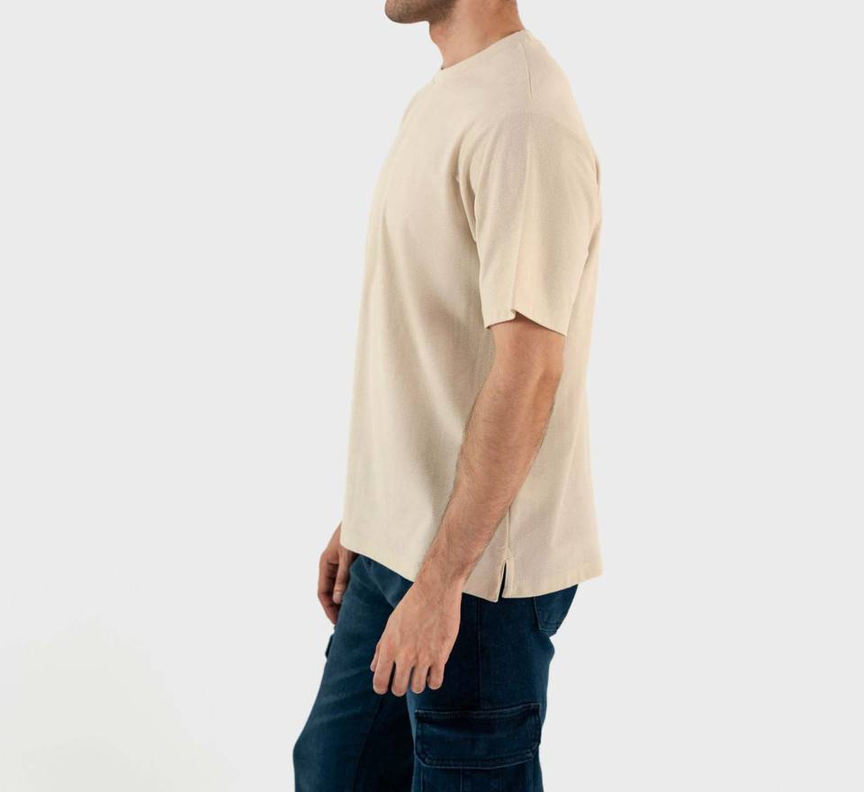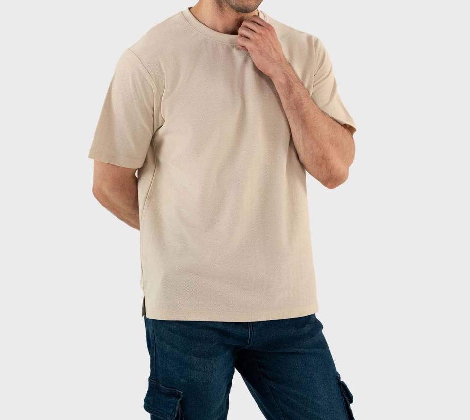 เสื้อยืดพรีเมียมเนื้อผ้าพิเศษสำหรับผู้ชาย สีเบจ แขนสั้น ทรงพื้นฐาน ผ้าฝ้ายแท้ 100% แห้งเร็ว ระบายอากาศดี เหมาะสำหรับงานสกรีนลาย สตรีทแวร์