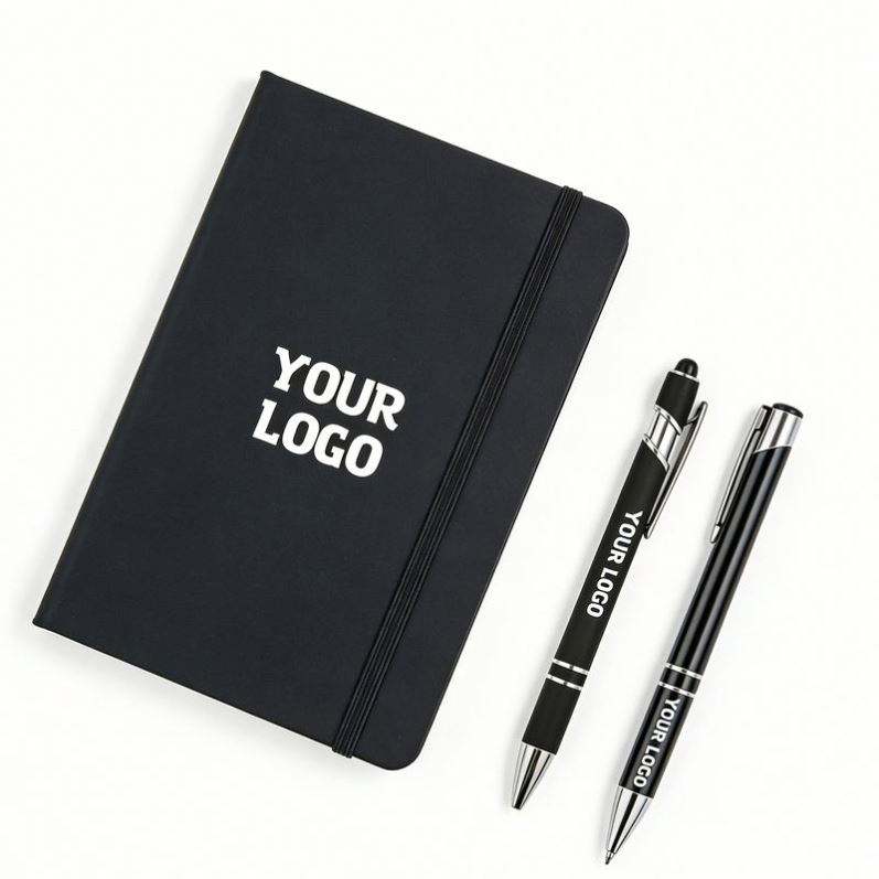 สมุดบันทึกหนังนูนลายแบบกำหนดเอง สีดำ ขนาด A5 กระดาษหนาคุณภาพพรีเมียม แบบมีจุด