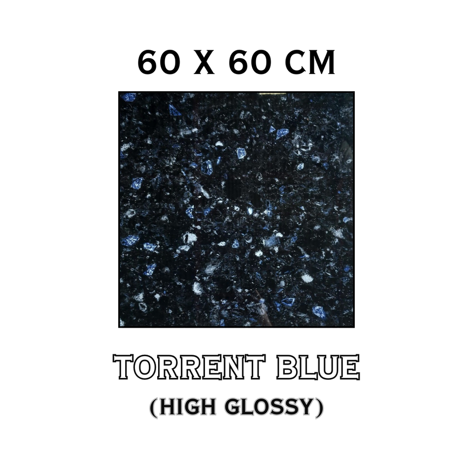 Premium Torrent Blue Super Glossy 600x600 mm Polished Glazed Porcelain Flooring Tiles