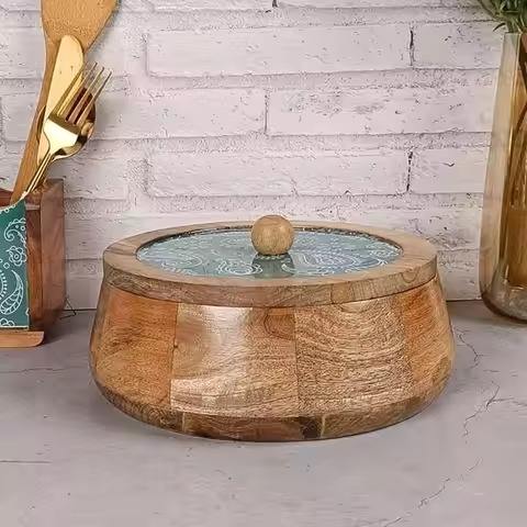 กล่องใส่จาปาตีไม้ ชุดเครื่องใช้บนโต๊ะอาหารคลาสสิก