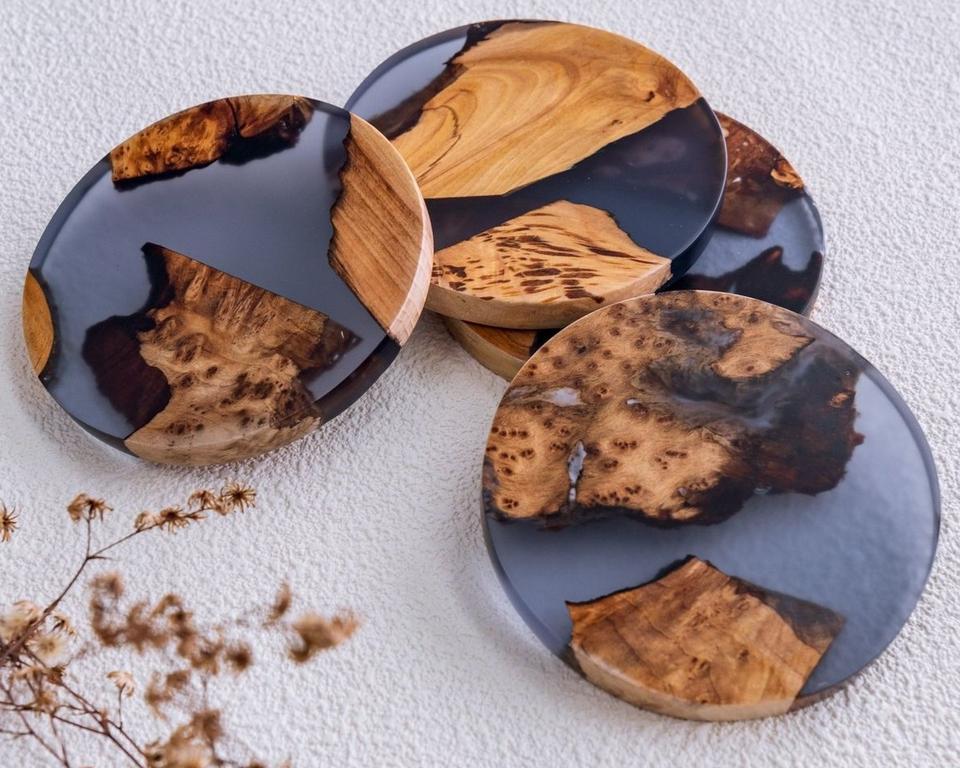 ที่รองแก้วไม้วอลนัททำจากไม้เรซินศิลปะแบบดั้งเดิมพรีเมี่ยมพร้อมเคลือบผิวด้วยเม็ดธรรมชาติและเงางามสูง