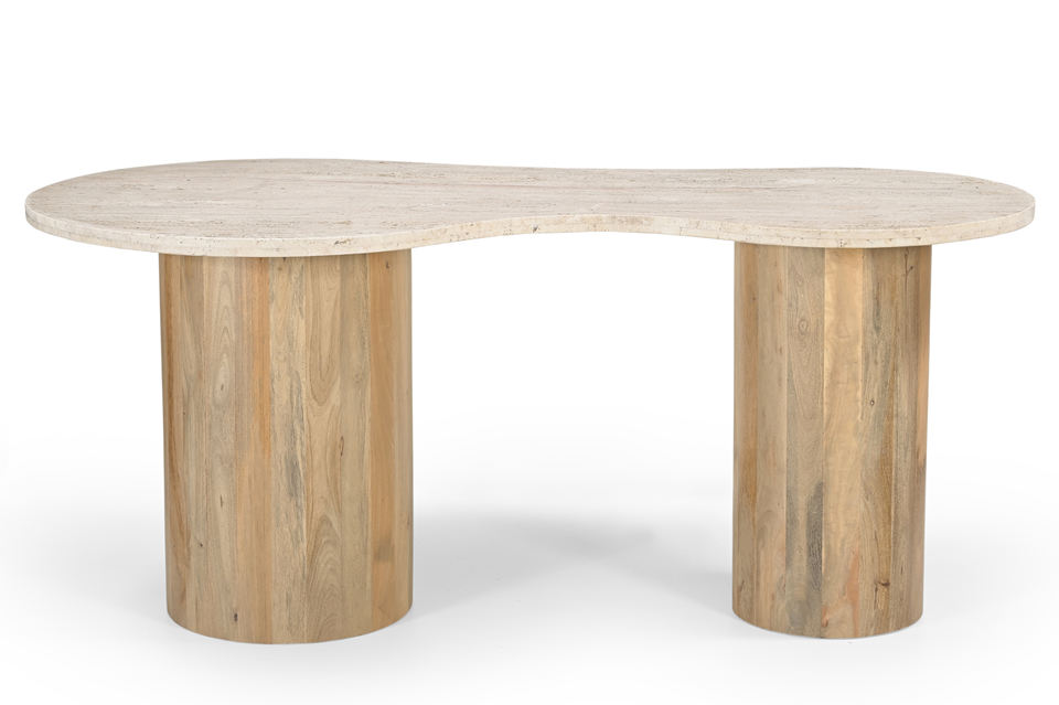 โต๊ะกาแฟหินอ่อน Travertine ทันสมัยทำด้วยมือฐานไม้เนื้อแข็งเฟอร์นิเจอร์ห้องรับประทานอาหารสุดหรูสำหรับบ้านวิลล่าการประชุมเชิงปฏิบัติการ
