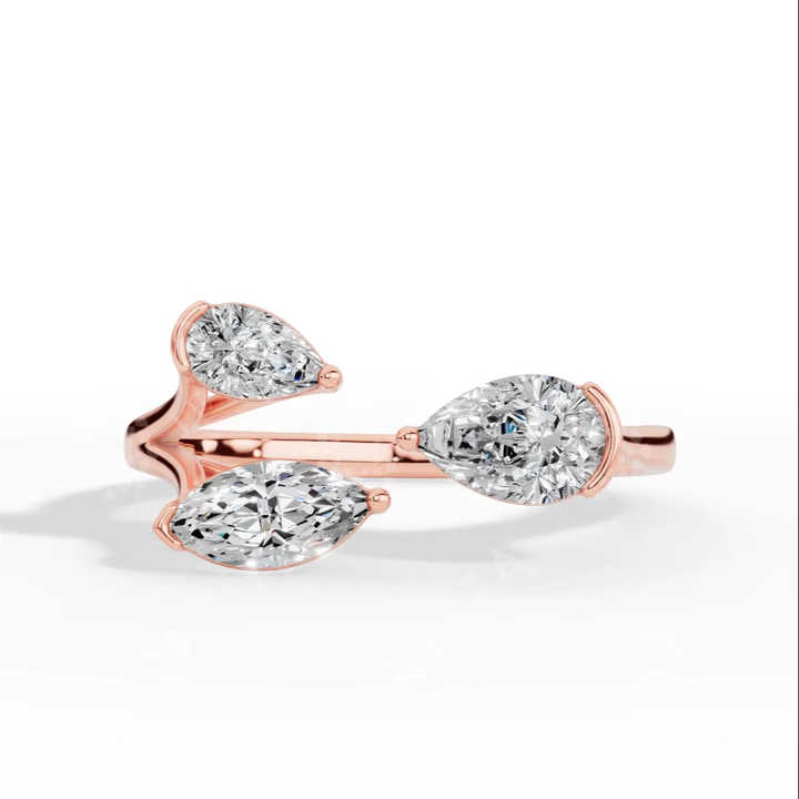 แหวนเพชรทรงเปียร์และมาร์คีส์ 3 เม็ด พรีเมียม ทอง 18K เพชรเลี้ยงในห้องปฏิบัติการ ขายส่ง ผู้ผลิตเครื่องประดับชั้นดี OEM