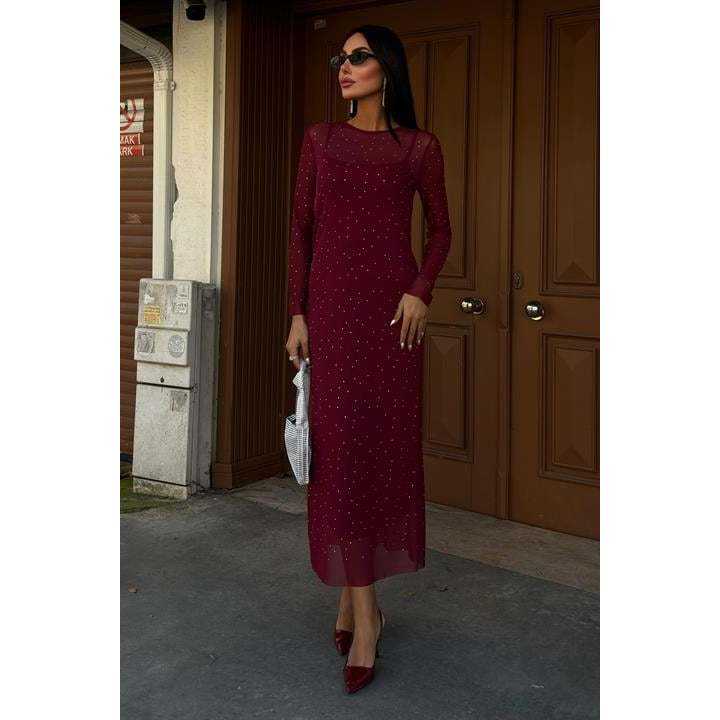 ชุดเดรสผ้าทูลล์พรีเมียม 2829 ทรงเข้ารูปประดับด้วยเพชรพลอย เอวทรงธรรมชาติ