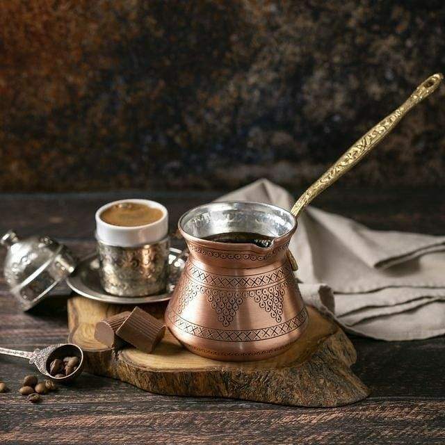 เครื่องชงกาแฟตุรกีแบบพรีเมียม ซีซ์เว่ แบบดั้งเดิม ทำจากโลหะสลักลาย ทนความร้อน ใช้กับเตาแก๊สสำหรับชงและเสิร์ฟกาแฟ