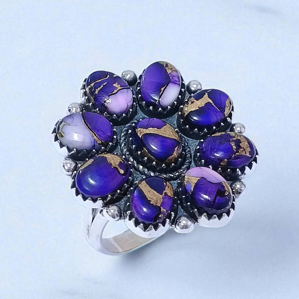 แหวนเทอร์ควอยซ์พรีเมียมประดับด้วยพลอยธรรมชาติและเครื่องประดับเงินสเตอร์ลิง
