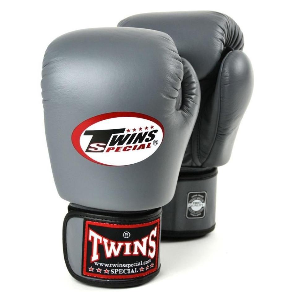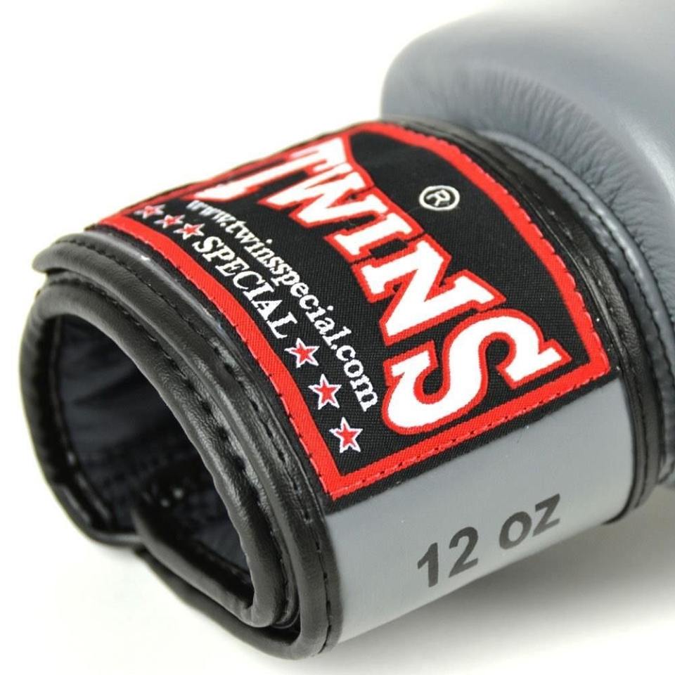 ถุงมือชกมวยพรีเมียมรุ่น Twins สีเทา สำหรับฝึกซ้อมและแข่งขัน รับสกรีนโลโก้ หนังวัวแท้