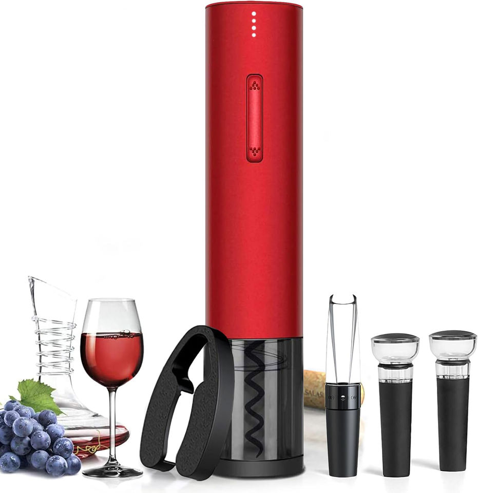 ที่เปิดขวดไวน์แบบชาร์จไฟได้พรีเมียม ไร้สาย สีแดง พร้อมที่ตัดฟอยล์ อุปกรณ์ครัวอัตโนมัติ