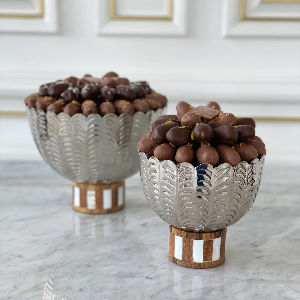 ถาดช็อคโกแลตโลหะสีเงินเกรดพรีเมี่ยมสำหรับใช้ในเชิงพาณิชย์ถาดช็อคโกแลตที่ปลอดภัยสำหรับเสิร์ฟช็อคโกแลตหรูหรา
