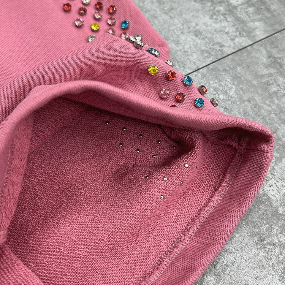 ชุดเซ็ตเสื้อฮู้ดดี้และกางเกงขายาวทรงหลวมสไตล์โอเวอร์ไซส์ ผ้าฝรั่งเศสเทอร์รี่เนื้อหนา ตกแต่งด้วยคริสตัล ซิปหน้า สำหรับทุกเพศ