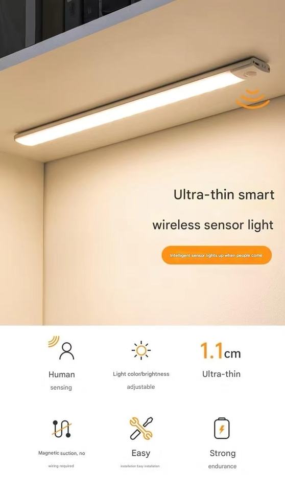 ไฟตู้แบบไร้สายพรีเมียมทันสมัย ชาร์จผ่าน USB-C พร้อมเซ็นเซอร์ตรวจจับการเคลื่อนไหวของร่างกาย ปรับความสว่างได้ ติดตั้งด้วยแม่เหล็ก ขนาด 60 ซม. รับประกัน 2 ปี