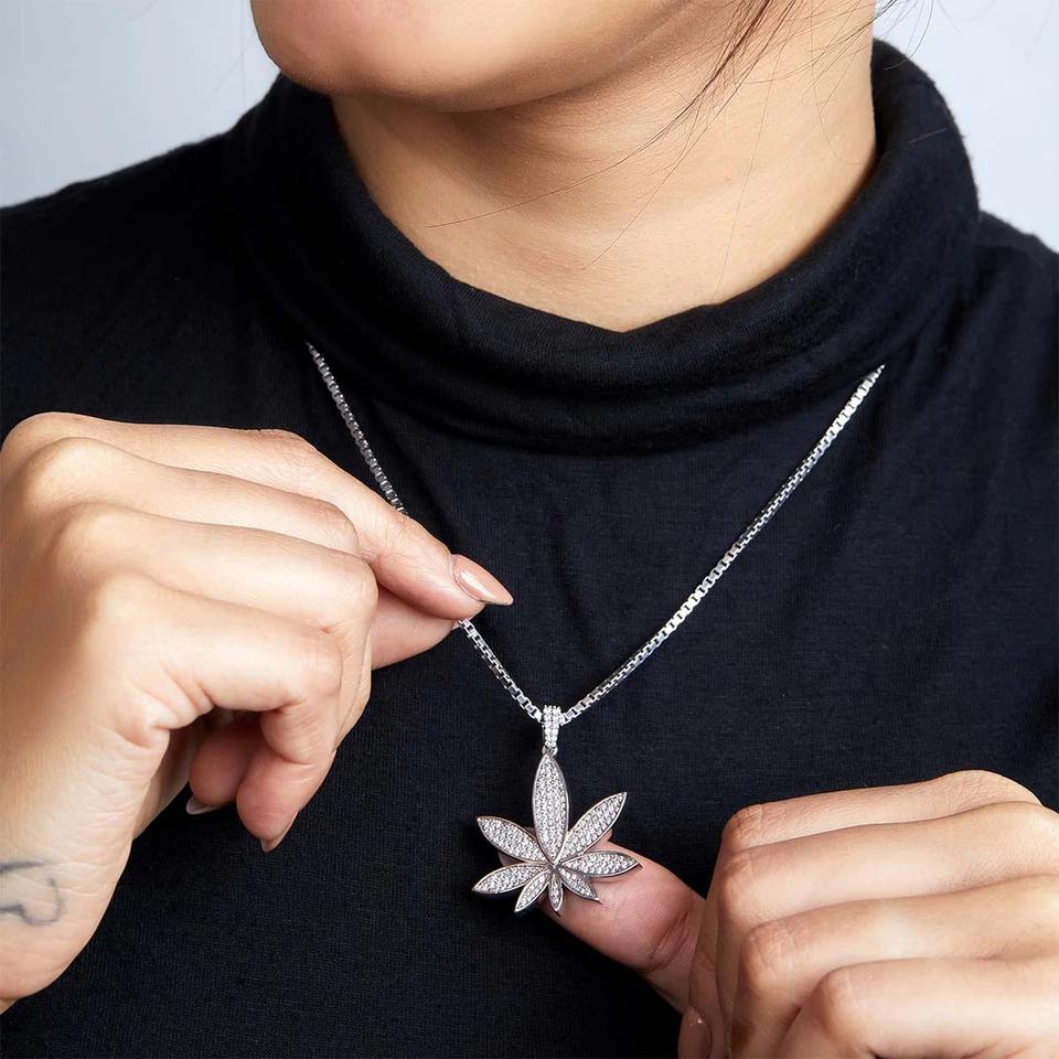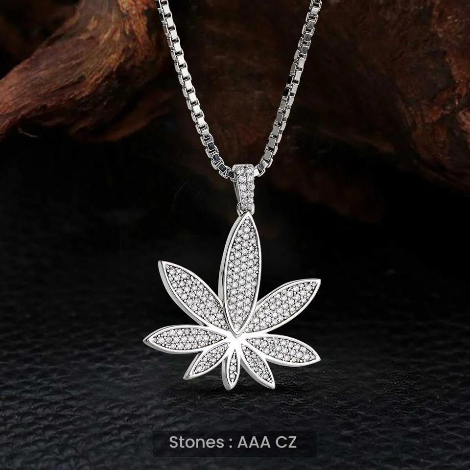 จี้เพชรโมอิสซาไนต์เกรดพรีเมียม VVS ประดับเพชรเต็มตัว พร้อมสร้อยเงินแท้ 925 ลายกัญชา สไตล์ฮิปฮอป สำหรับผู้ชาย ราคาดีที่สุด