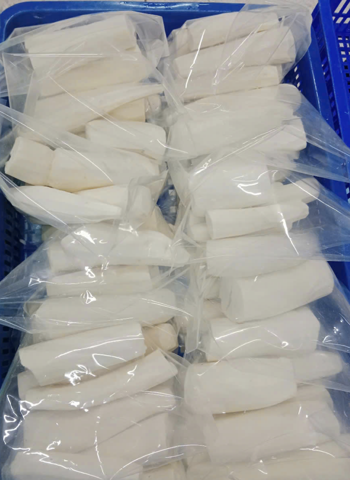 มันสำปะหลังแช่แข็งพรีเมียมจากเวียดนาม ปอกเปลือกทั้งต้น IQF เหมาะสำหรับผู้นำเข้าและผู้ซื้อขายส่ง