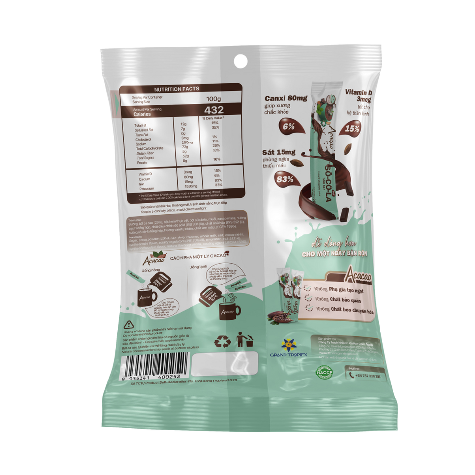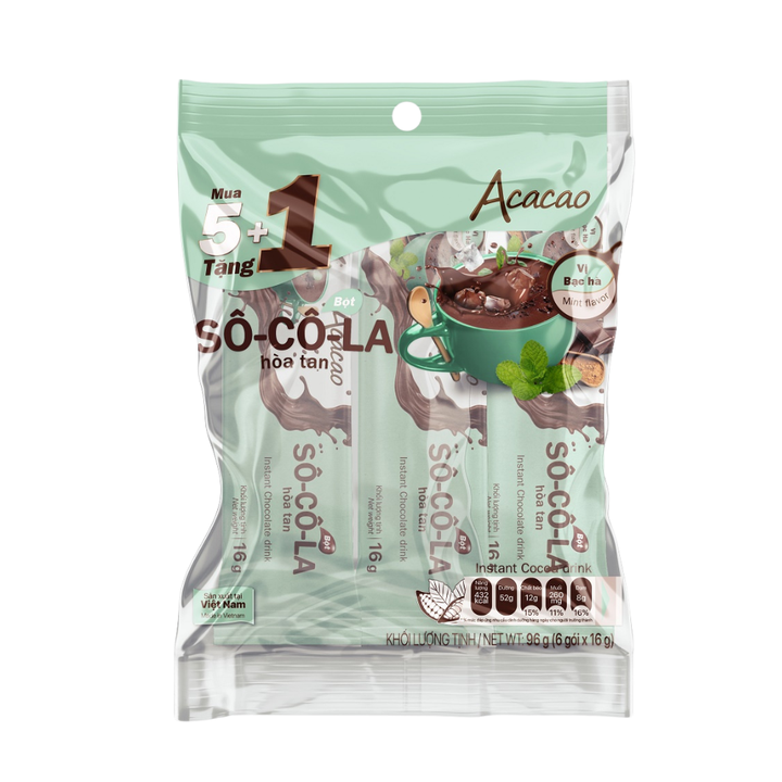 ชื่อผลิตภัณฑ์:ผงช็อกโกแลตสำเร็จรูป acacacacao-มิ้นท์รส-16กรัม