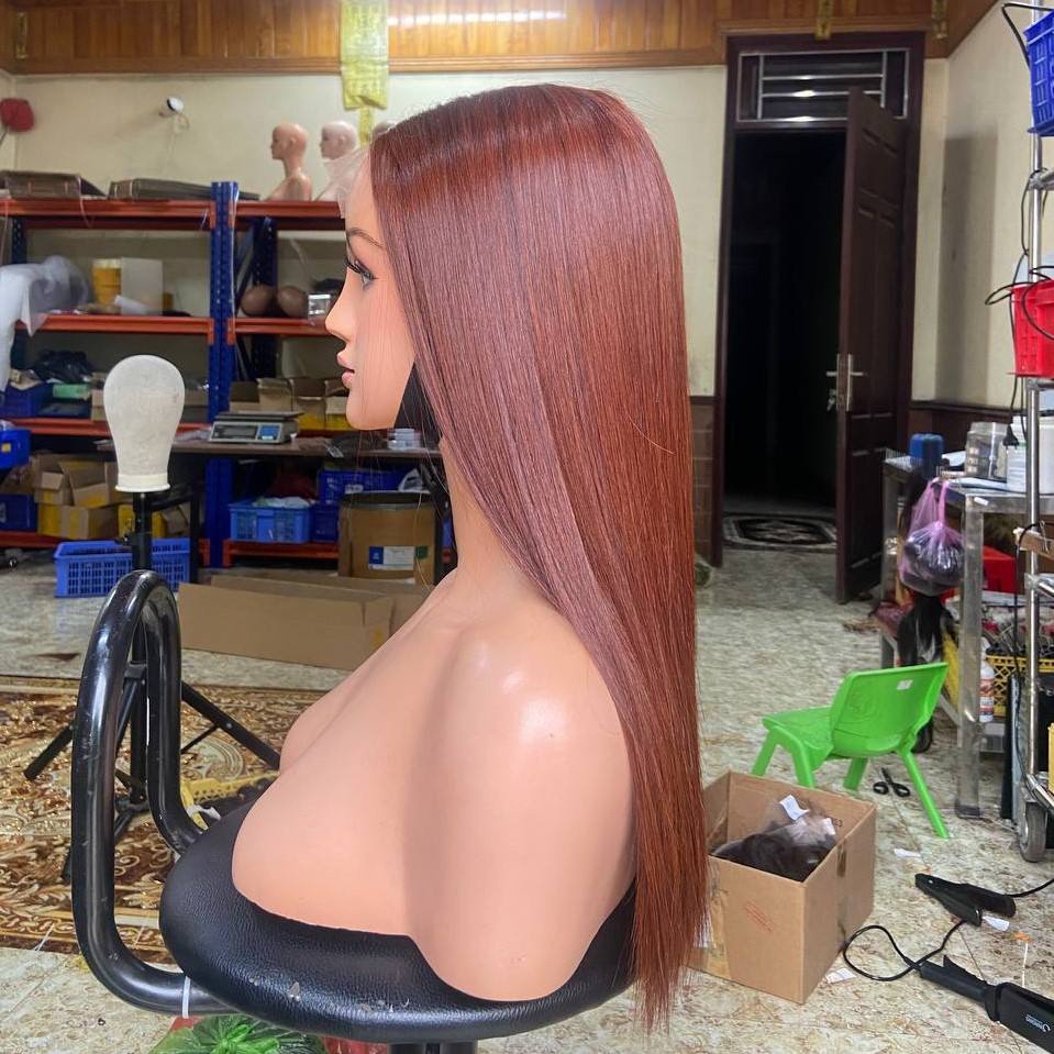 วิกผมแท้ทรงตรงเรียบเนียนแบบมีลูกไม้ด้านหน้าเป็นลอนหลวม