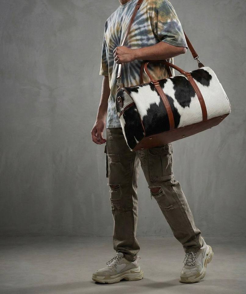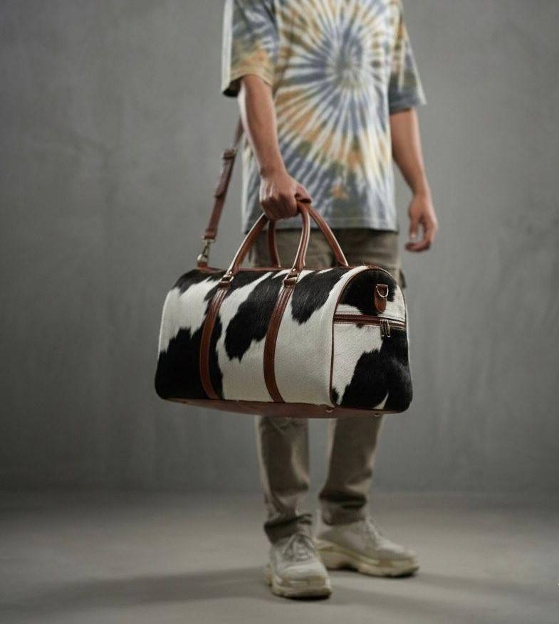 กระเป๋าเดินทางหนังแท้ลายขนสัตว์สไตล์วินเทจพรีเมียม พร้อมซิปปิด น้ำหนักเบา เหมาะสำหรับเดินทางช่วงสุดสัปดาห์ รุ่น LHODB-0126
