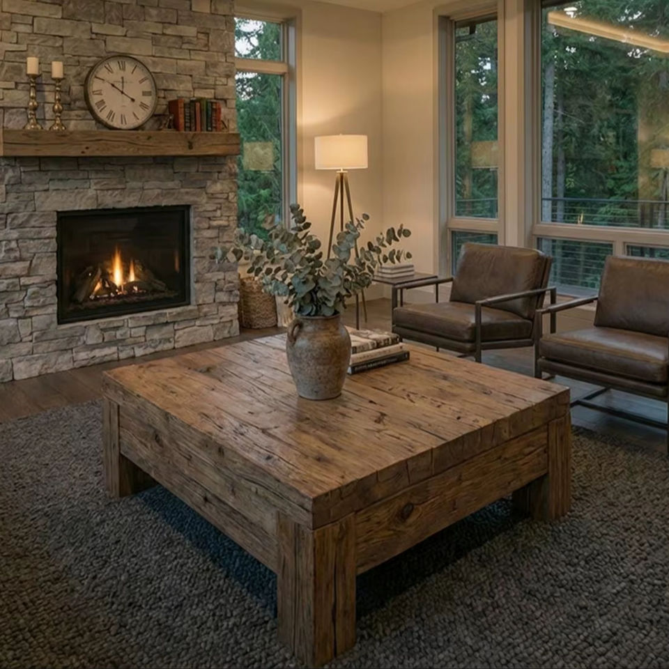 Premium Vintage Style Solid Wood Center Table With Distressed Natural Grain Texture Thick Frame Design And Sturdy Support Base