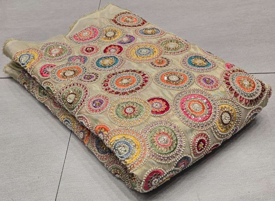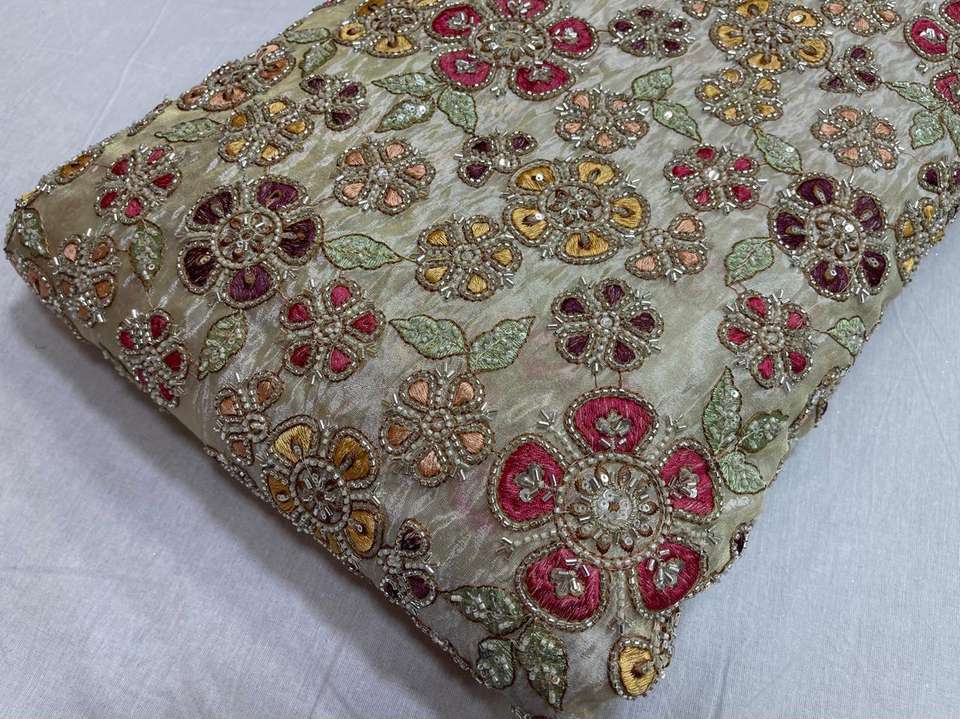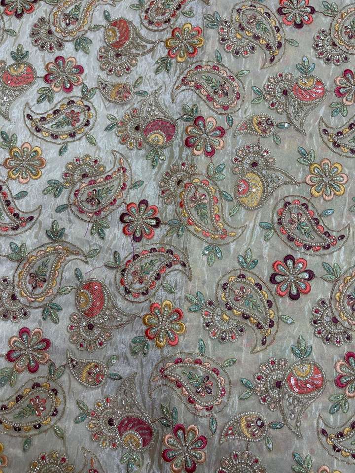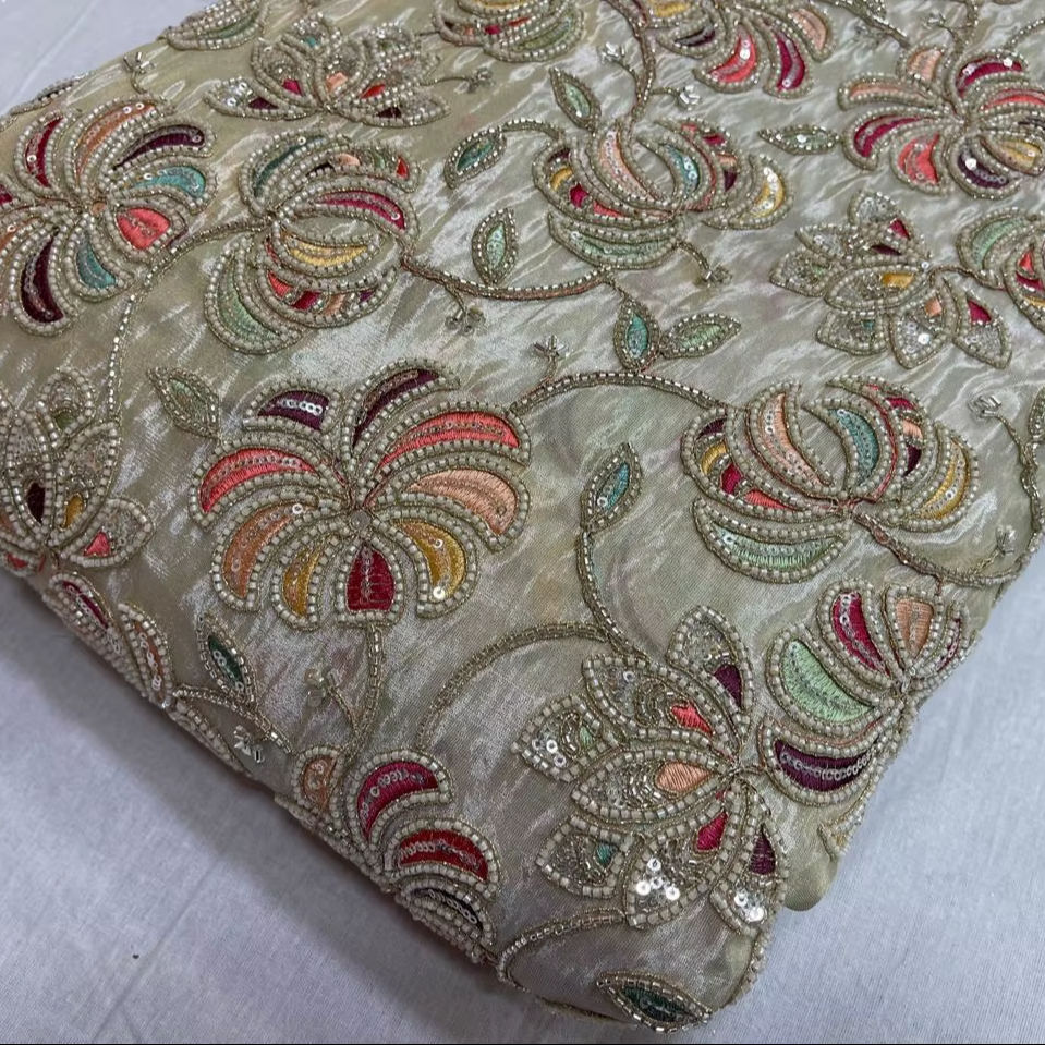 Premium Viscose Simmer Tissue All over Multi Thread and Original Beads Embroidery Beautiful work