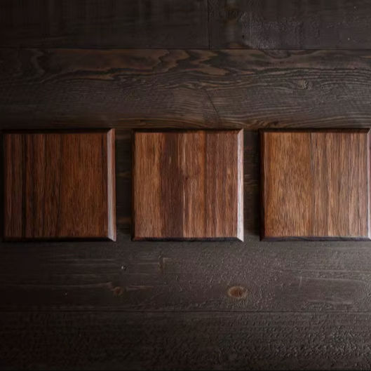 แผ่นรองแก้วไม้วอลนัทเมเปิลคุณภาพพรีเมียม รูปทรงสี่เหลี่ยม เป็นมิตรกับสิ่งแวดล้อม ปรับแต่งขนาดและความหนาได้ สไตล์โมเดิร์น เหมาะสำหรับใช้ในบ้าน โรงแรม ร้านอาหาร