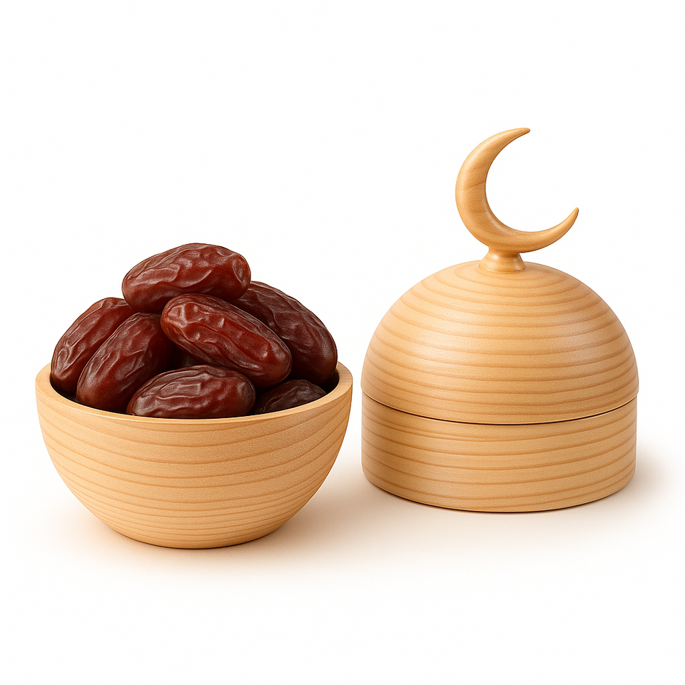 ชามไม้วอลนัทพร้อมฝาเสี้ยวกล่องผลไม้แห้งอิสลามสำหรับตกแต่งเทศกาลและให้เป็นของขวัญสำหรับเดือนรอมฎอน