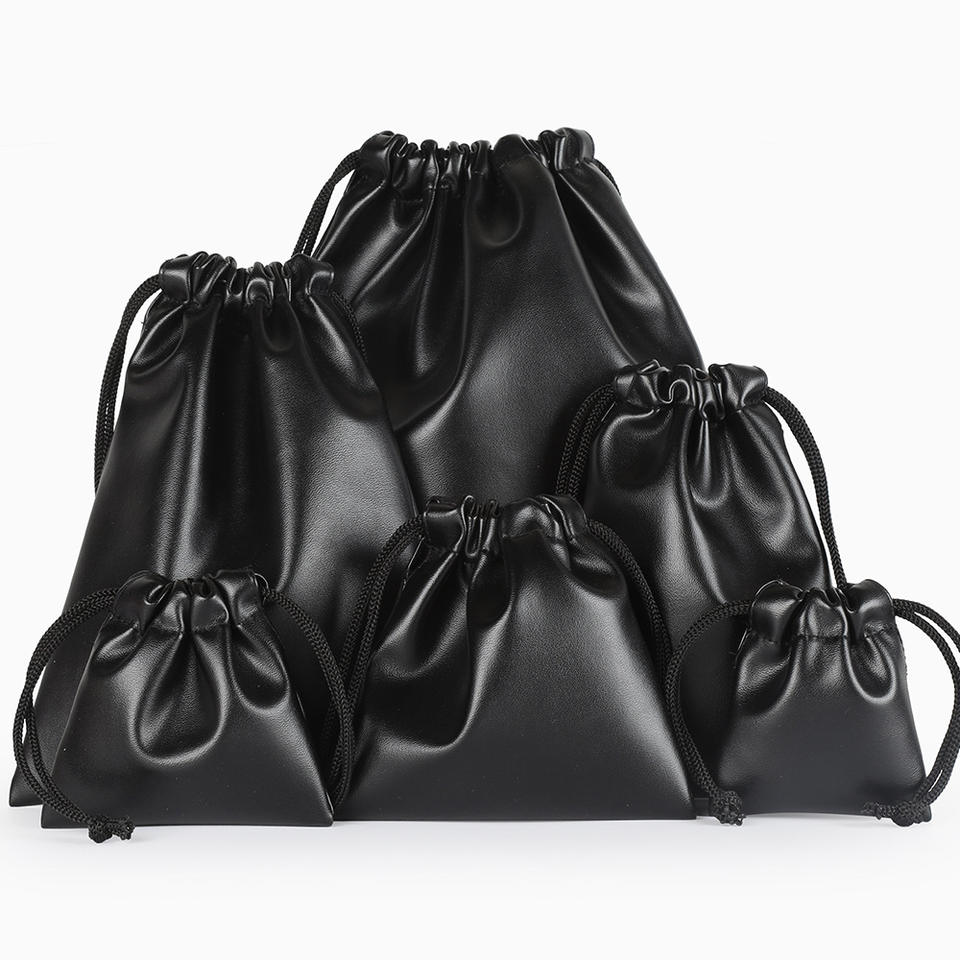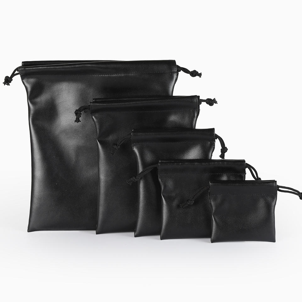 ชื่อผลิตภัณฑ์:กระเป๋าเทคหนัง PU สีดำพร้อมเชือกผูกสำหรับอุปกรณ์เสริม
