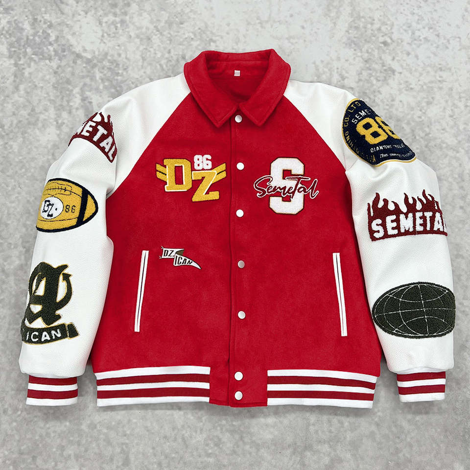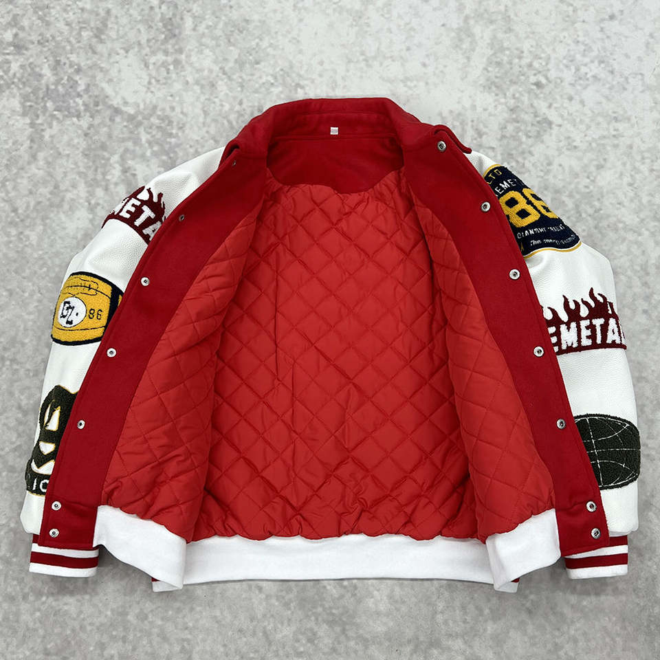 แจ็คเก็ตวาร์ซิตี้กันน้ำแบบพรีเมียม ลายปะติดสไตล์วินเทจ ปักชื่อได้ตามสั่ง สำหรับฤดูหนาว เหมาะสำหรับทุกเพศ เป็นของขวัญ
