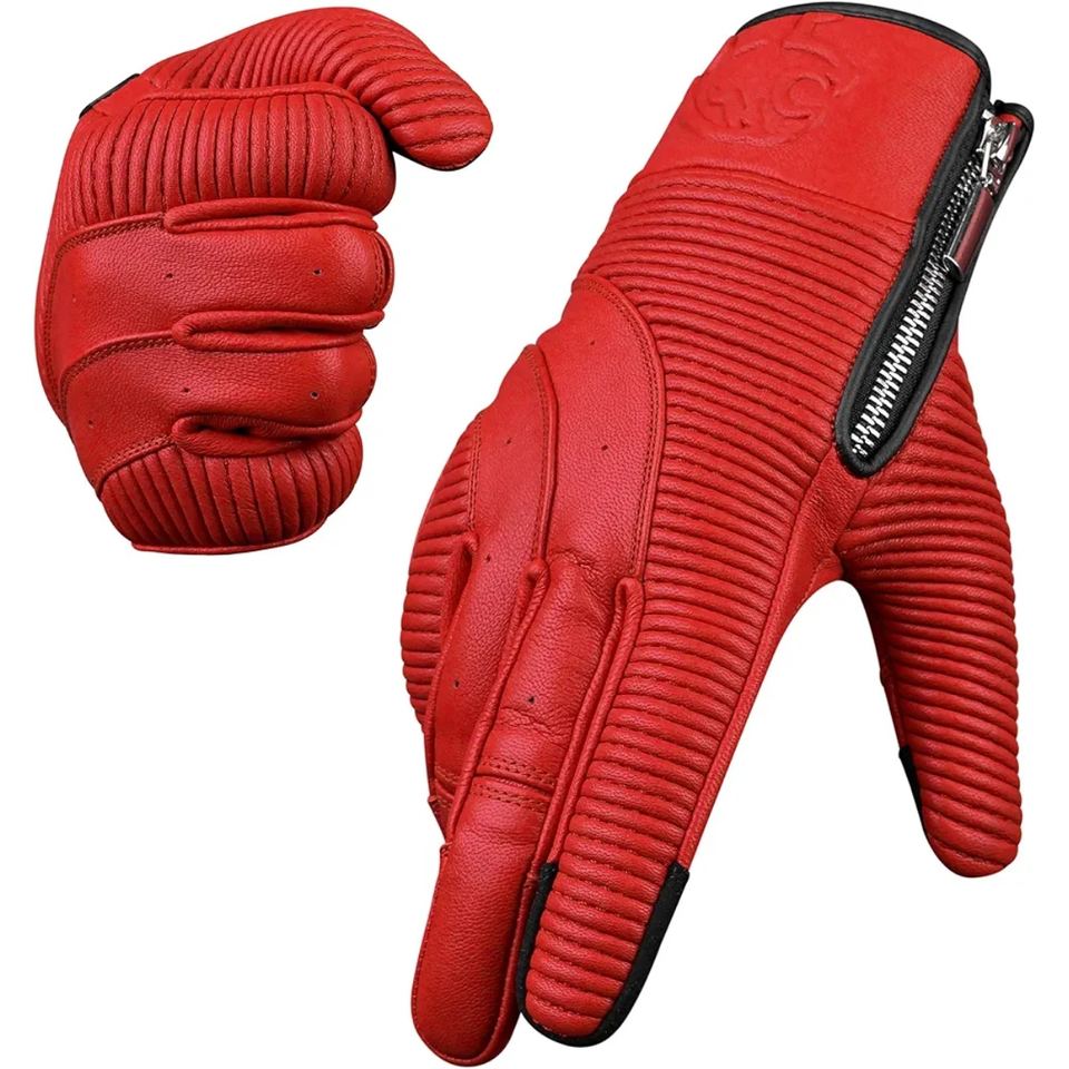 ถุงมือมอเตอร์ไซค์หนังแท้เคลือบแว็กซ์พรีเมียม พร้อมซับในอุ่นและแผ่นโฟมป้องกันการบาดเจ็บ